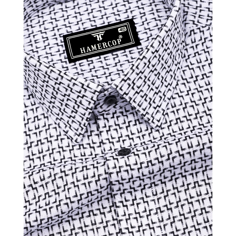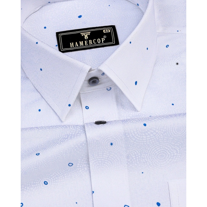 Sweden Blue Dot Printed White Satin Formal Cotton Shirt
