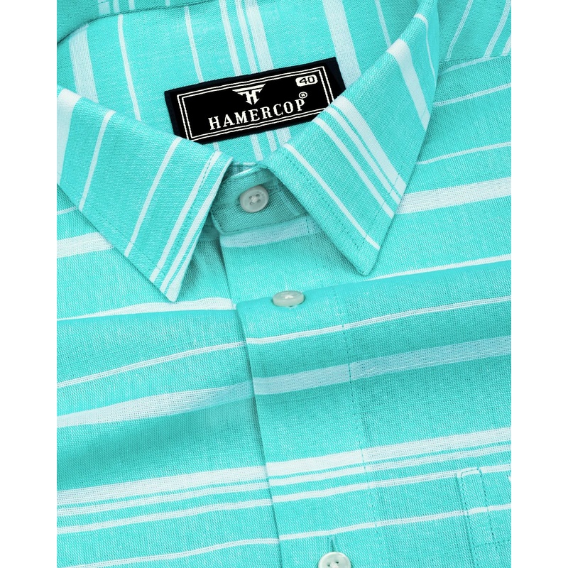 Surftime AquaBlue With White Weft Stripe Amsler Cotton Shirt