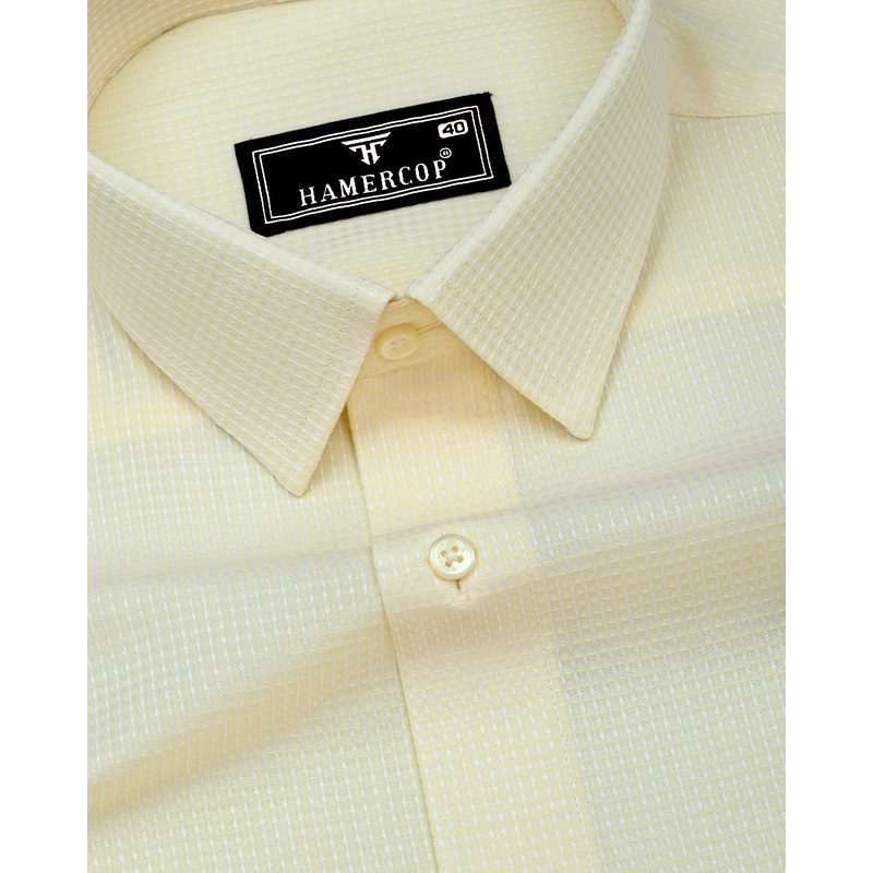 Swifton Light Yellow With White Dobby Formal Cotton Shirt