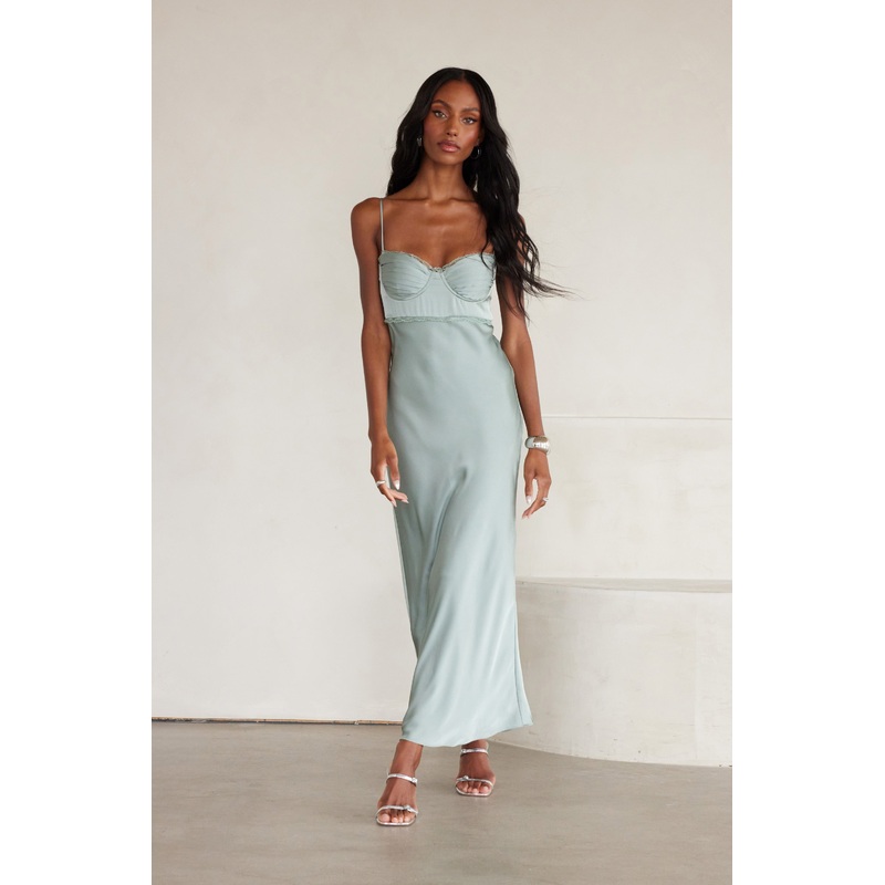 Florianne Satin Maxi Dress Sage