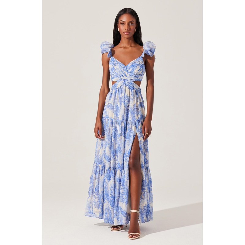 Florentina Floral Tiered Maxi Dress Cream blue floral