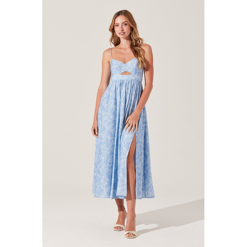 Front Cutout Floral Midi Dress Dusty blue floral