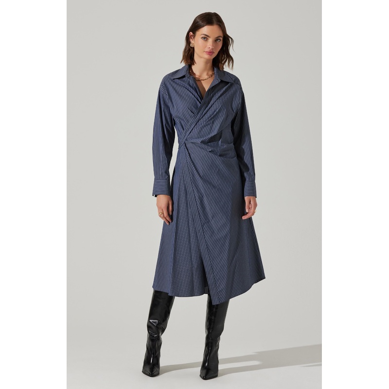 Flykra Asymmetrical Wrap Midi Dress Denim blue