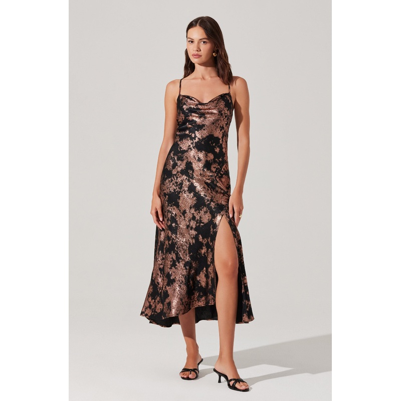 Gaia Metallic Midi Dress Black rose gold