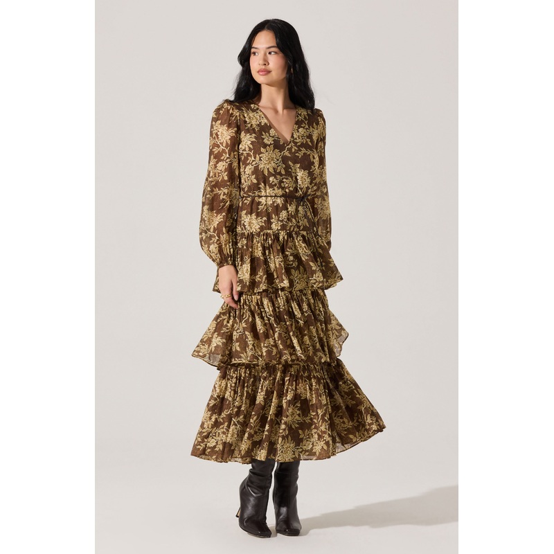Franchesca Tiered Ruffle Maxi Dress Olive floral
