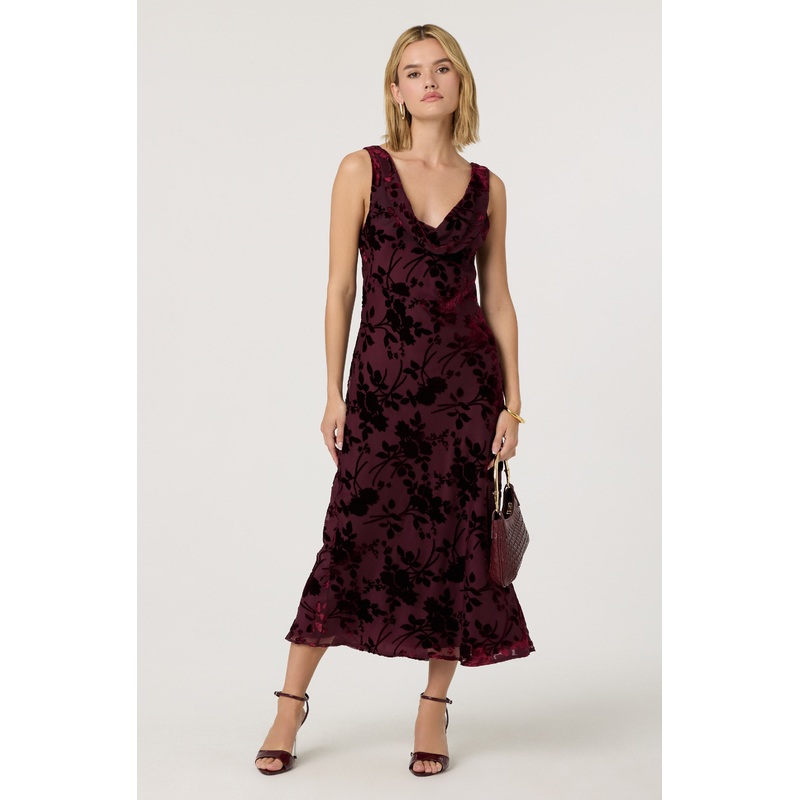 Floris Burnout Floral Maxi Dress Wine