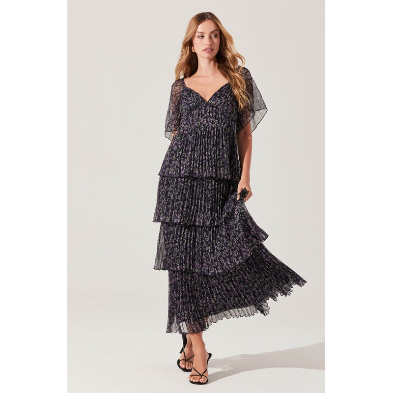 Gracelynn Pleated Tiered Maxi Dress Purple floral