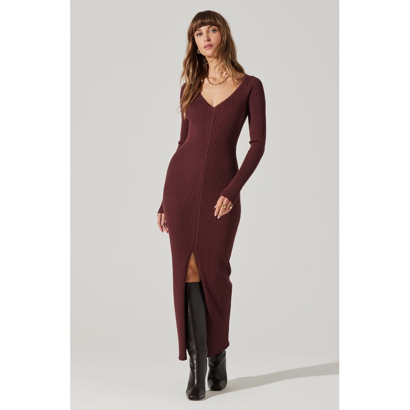 Glenda V-neck Maxi Sweater Dress Mulberry