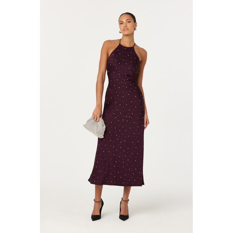 Halley Rhinestone Embellished Midi Dress Deep purple