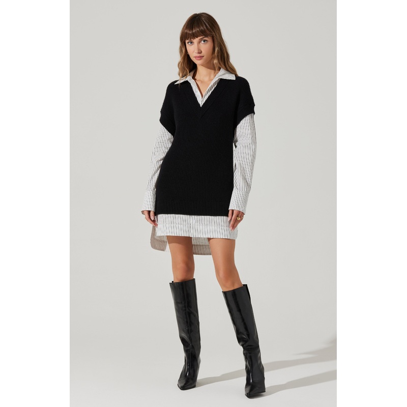 Irecia Stripe Sweater Midi Dress Stripe black cream
