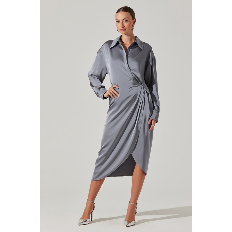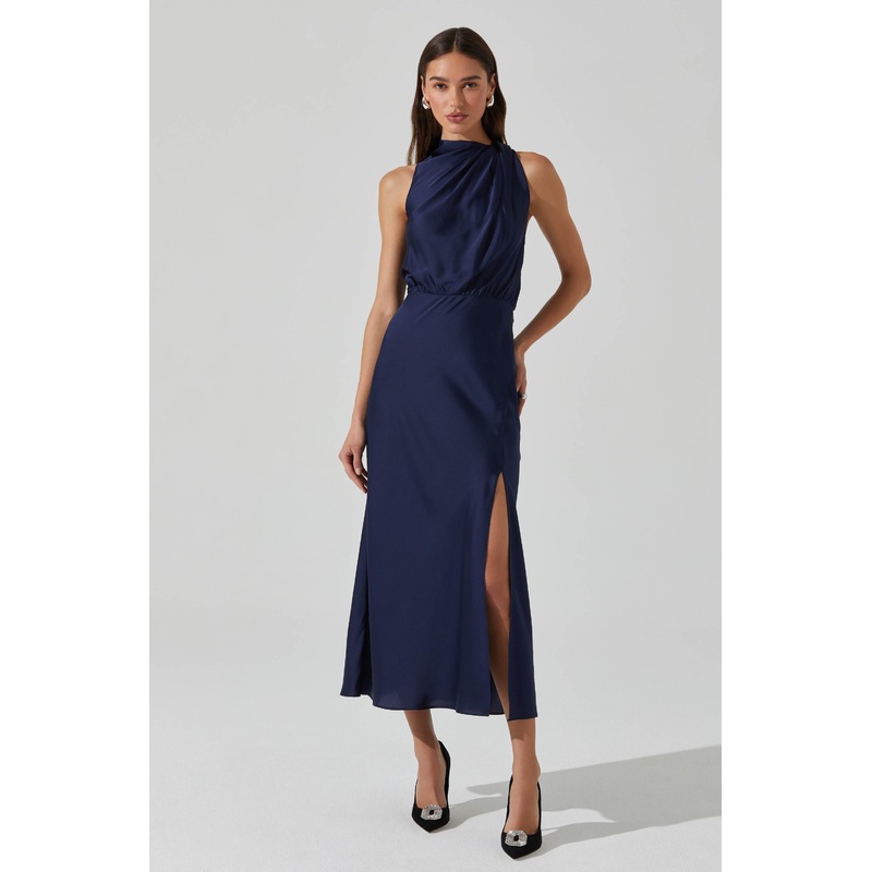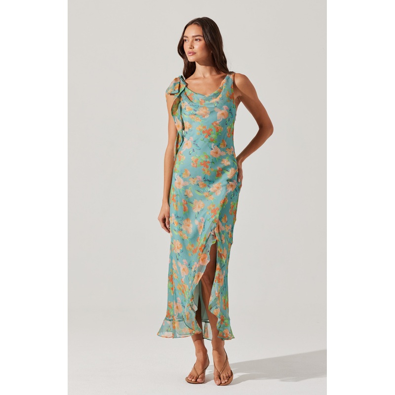 Isabelle Ruffled Cowl Neck Dress Blue orange floral