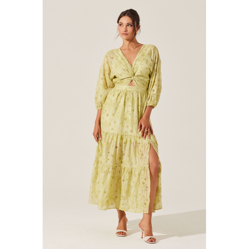 Jesalyn Floral Eyelet Maxi Dress Matcha