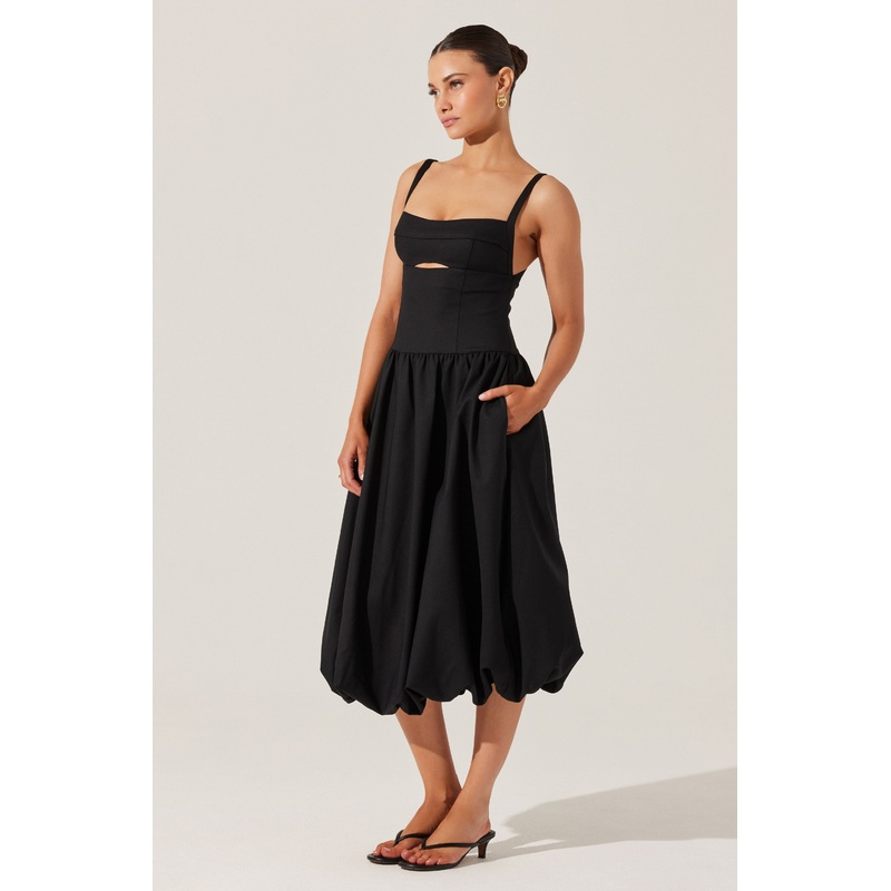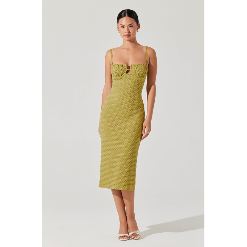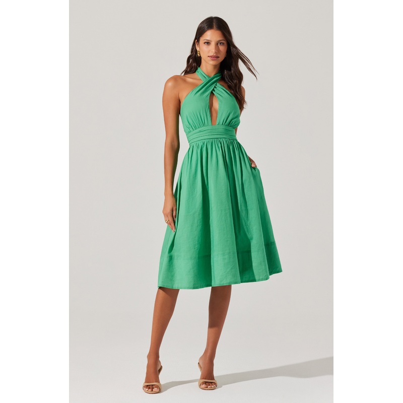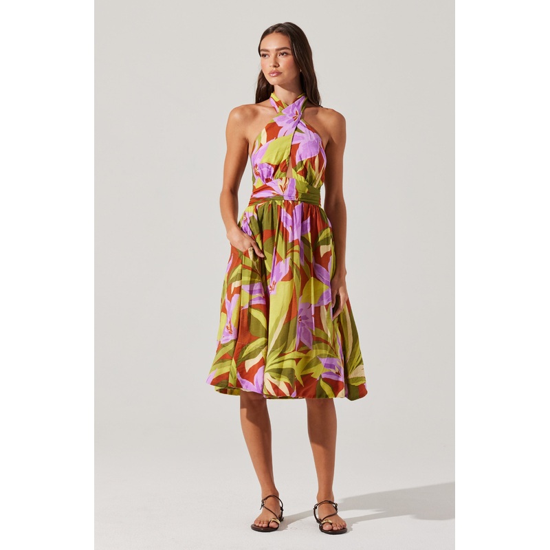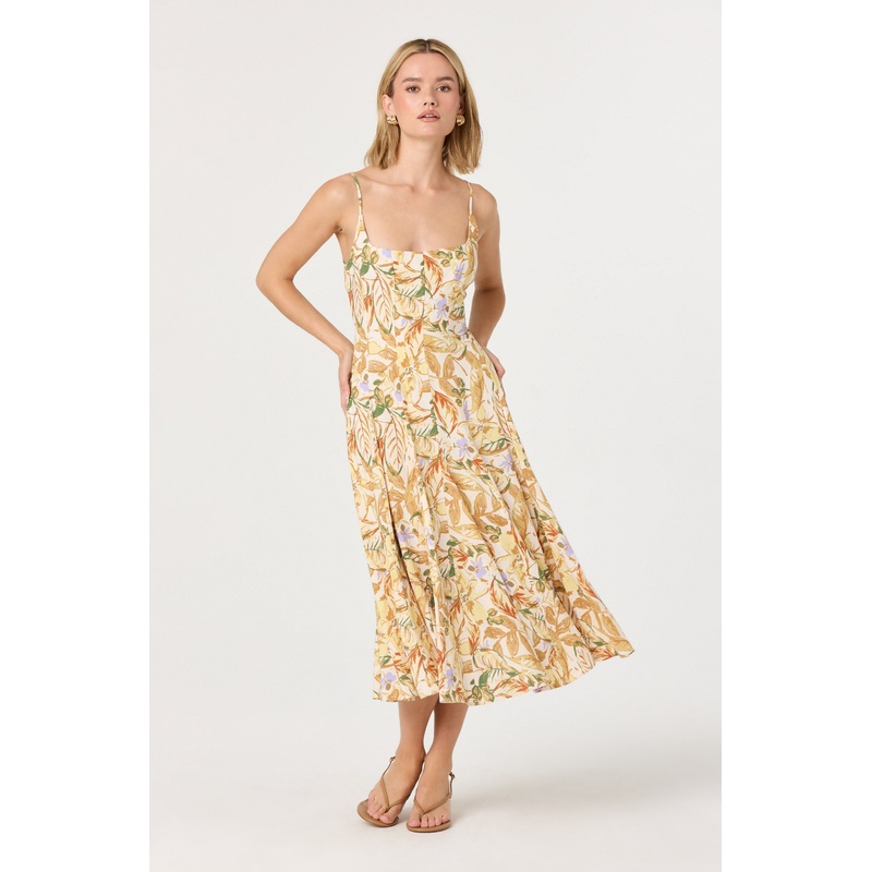 Jaleyah Paneled Flare Midi Dress Mustard green tropic