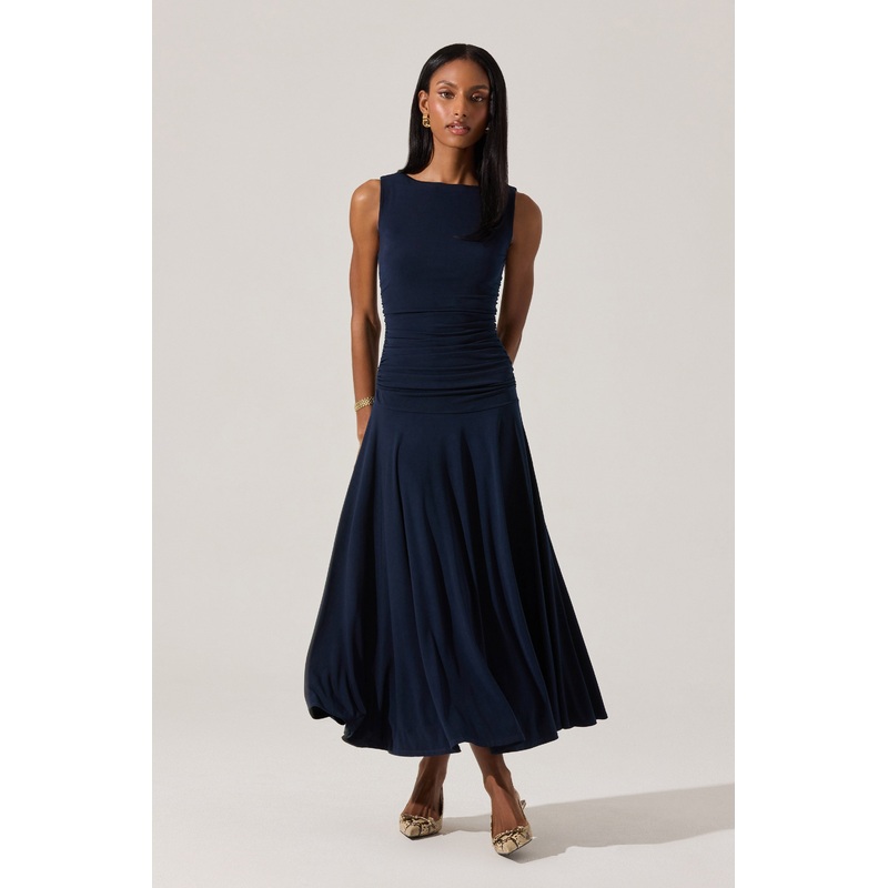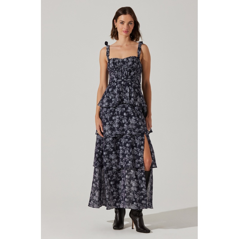 Mellorie Floral Tiered Maxi Dress Navy grey floral