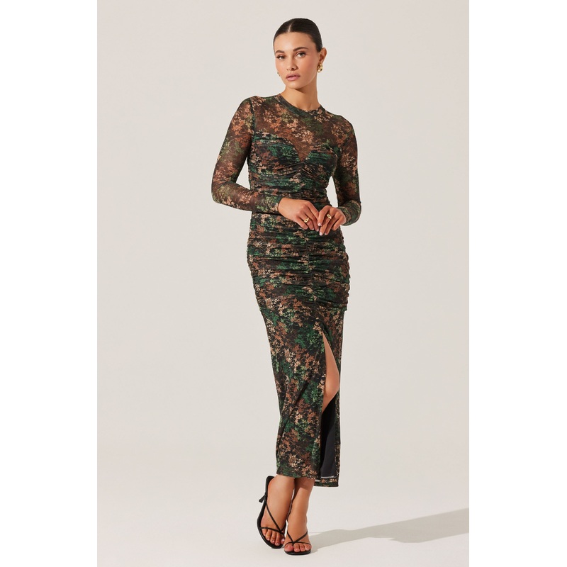 Mesh Sweetheart Ruched Maxi Dress Black multi floral