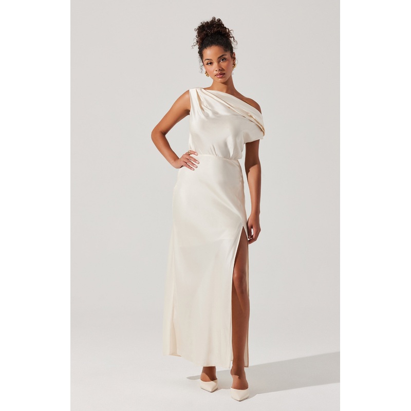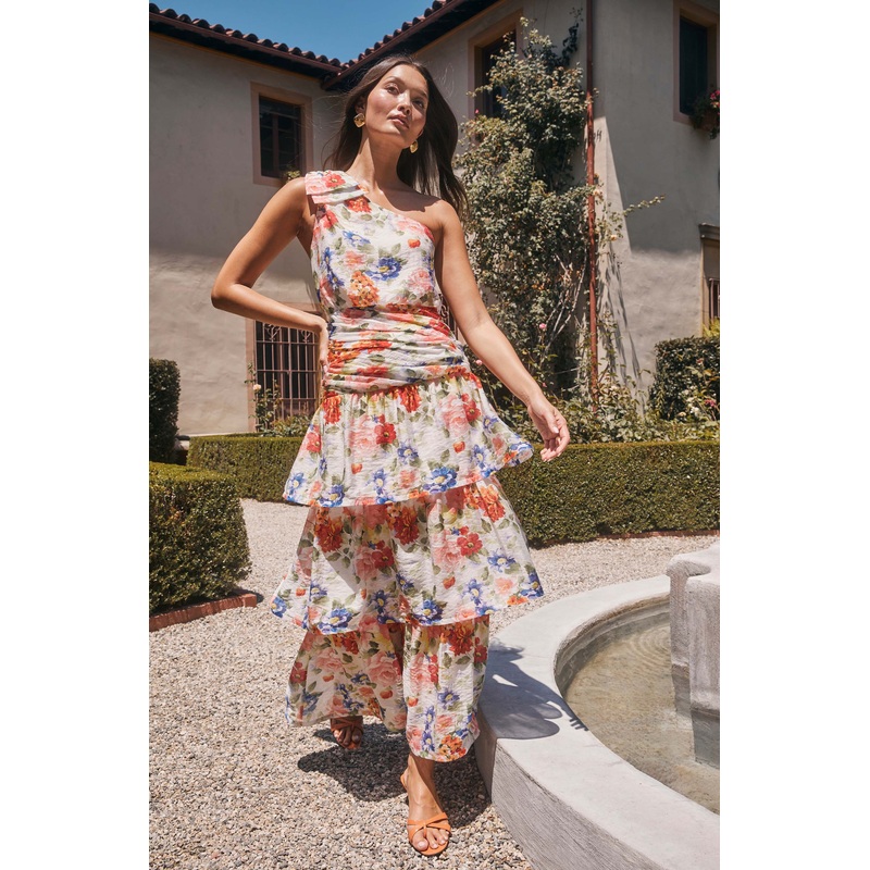 Natali One Shoulder Floral Maxi Dress White coral floral