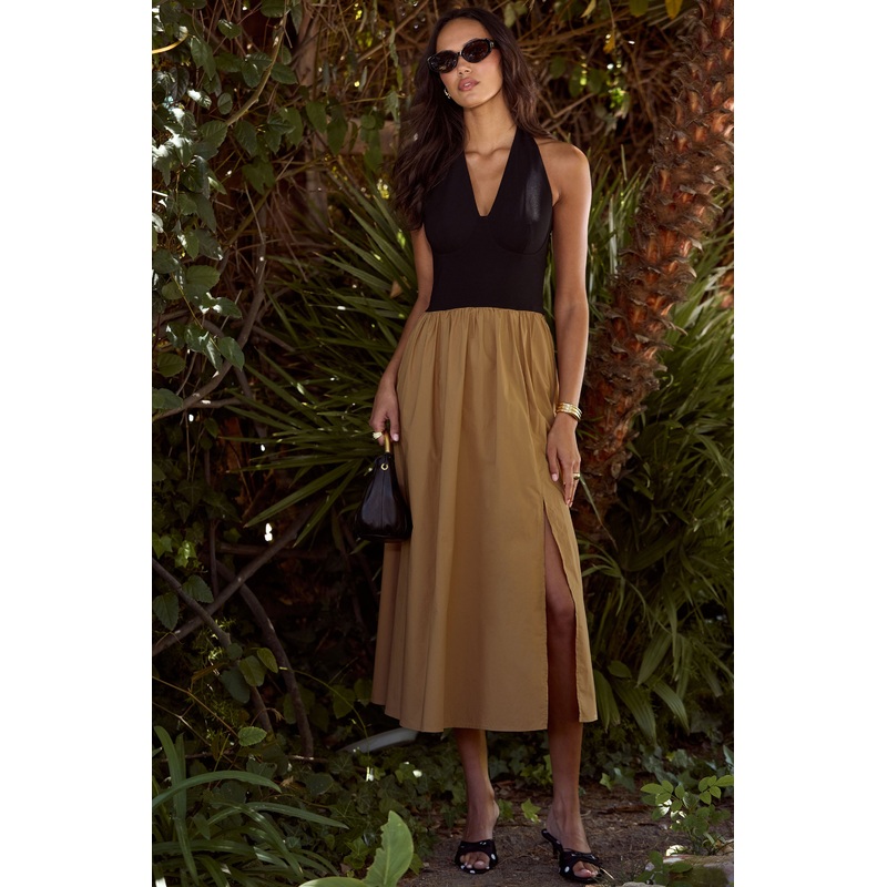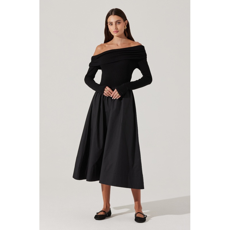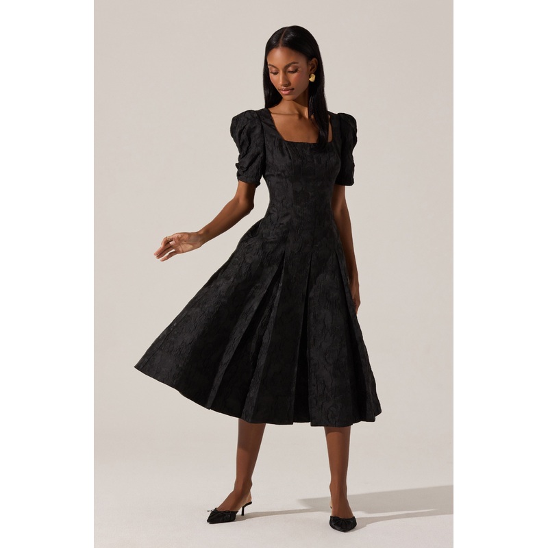 Mosella Jacquard Puff Sleeve Midi Dress Black