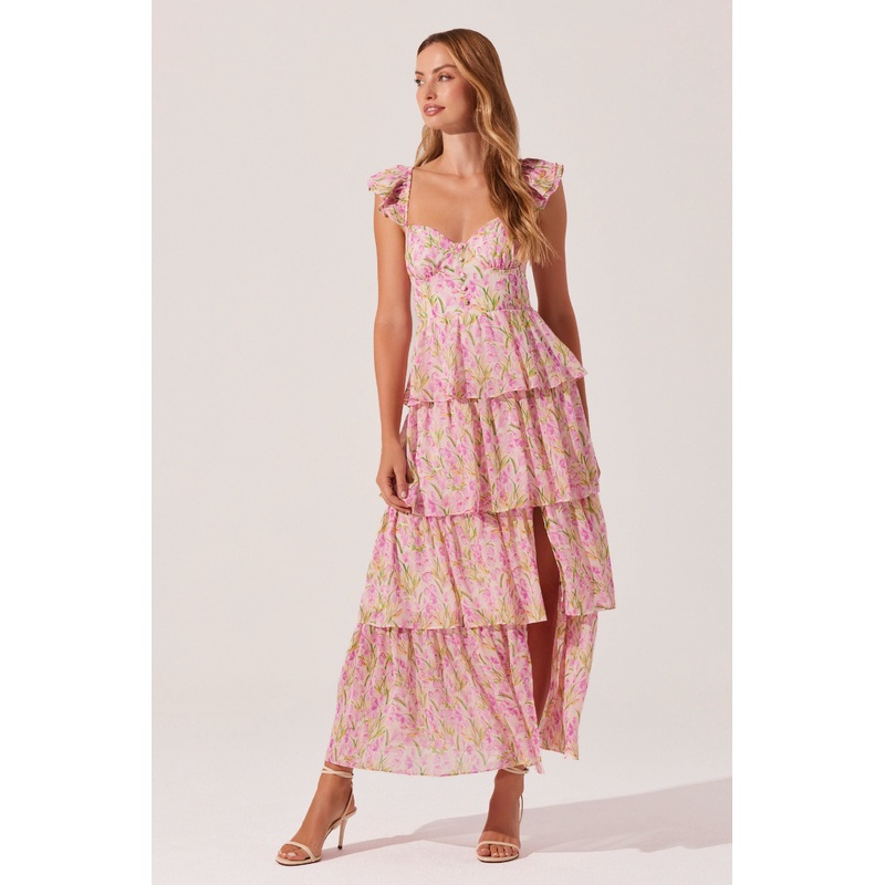 Midsummer Floral Tiered Maxi Dress Pink multi floral