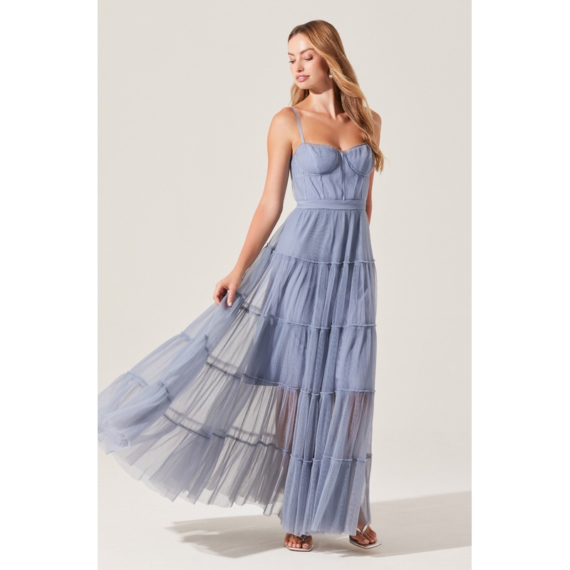 Mireya Bustier Tulle Maxi Dress Dusty blue