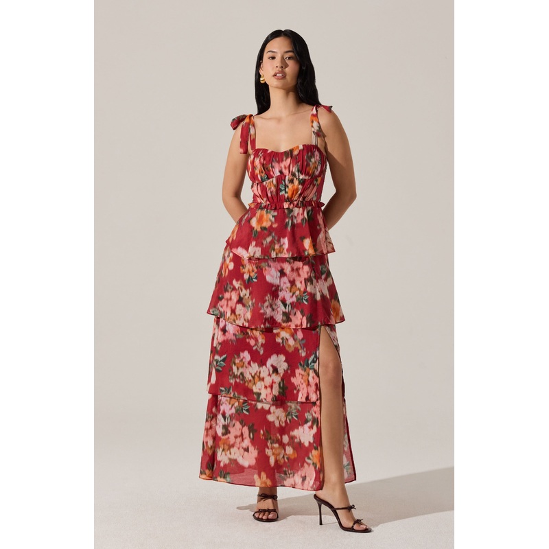 Mellorie Sweetheart Tiered Maxi Dress Red multi floral