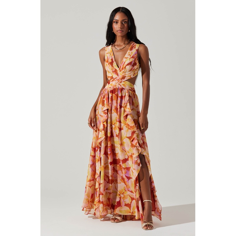 Noya Floral Cutout Maxi Dress Pink floral
