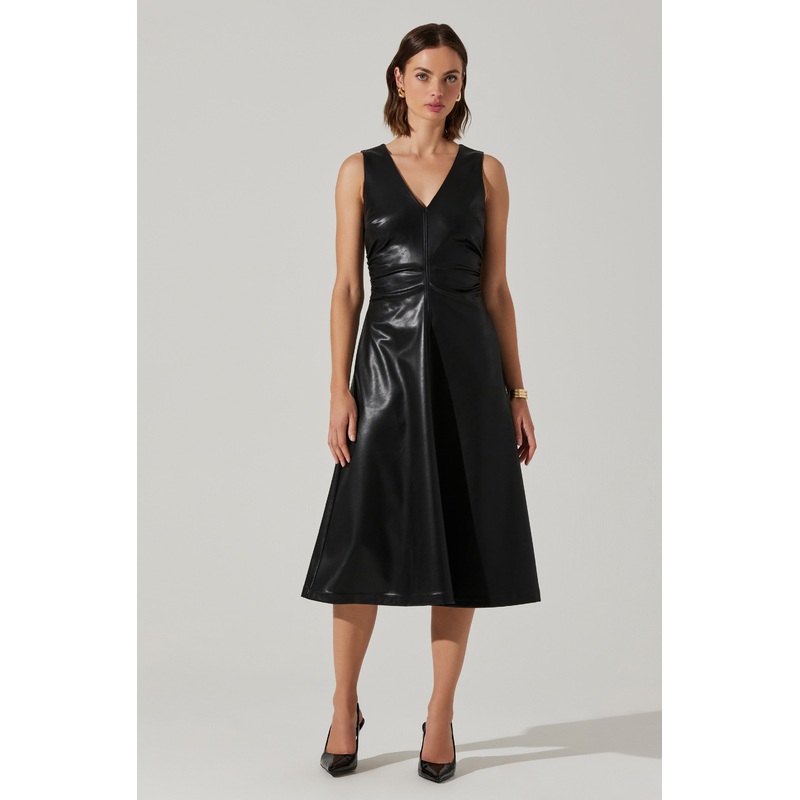 Omaira Faux Leather Midi Dress Black