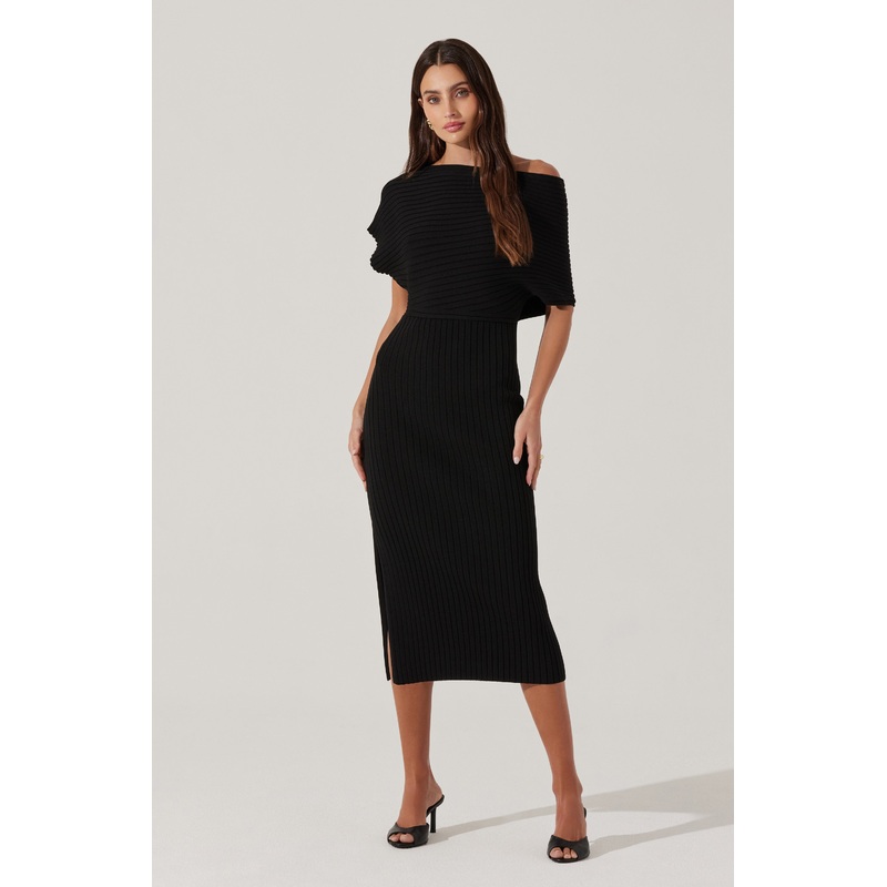 Off Shoulder Ribbed Sweater Dress Black