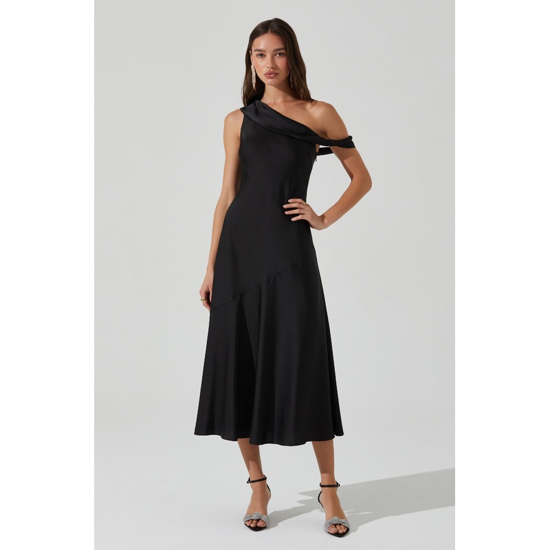 Orissa Satin Off Shoulder Dress Black