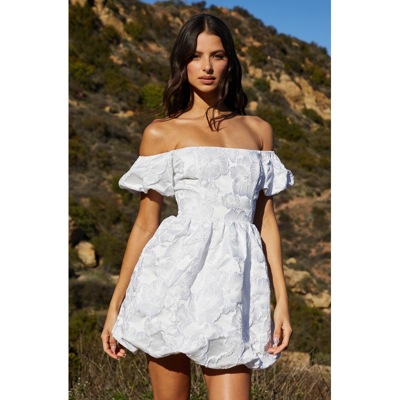Off Shoulder Jacquard Bubble Dress White