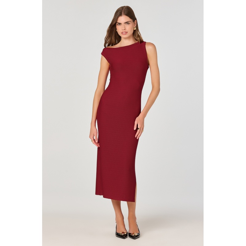 Off Shoulder Ribbed Knit Dress Red