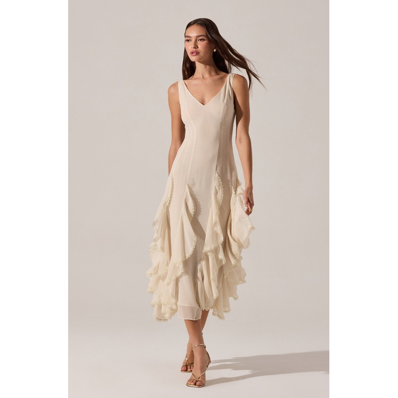 Philomene V-Neck Ruffle Trim Dress Cream