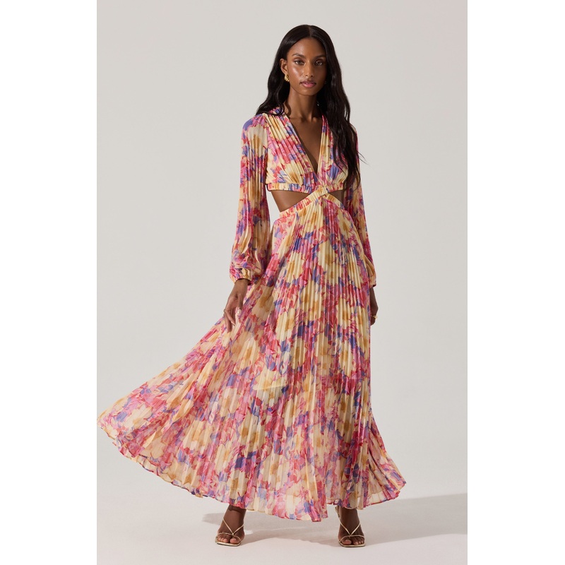 Revery Floral Long Sleeve Maxi Dress Yellow pink floral
