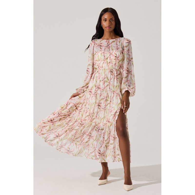 Revery Floral Long Sleeve Maxi Dress Cream pink floral