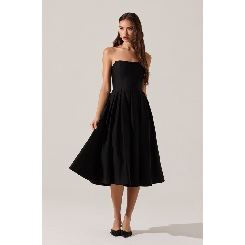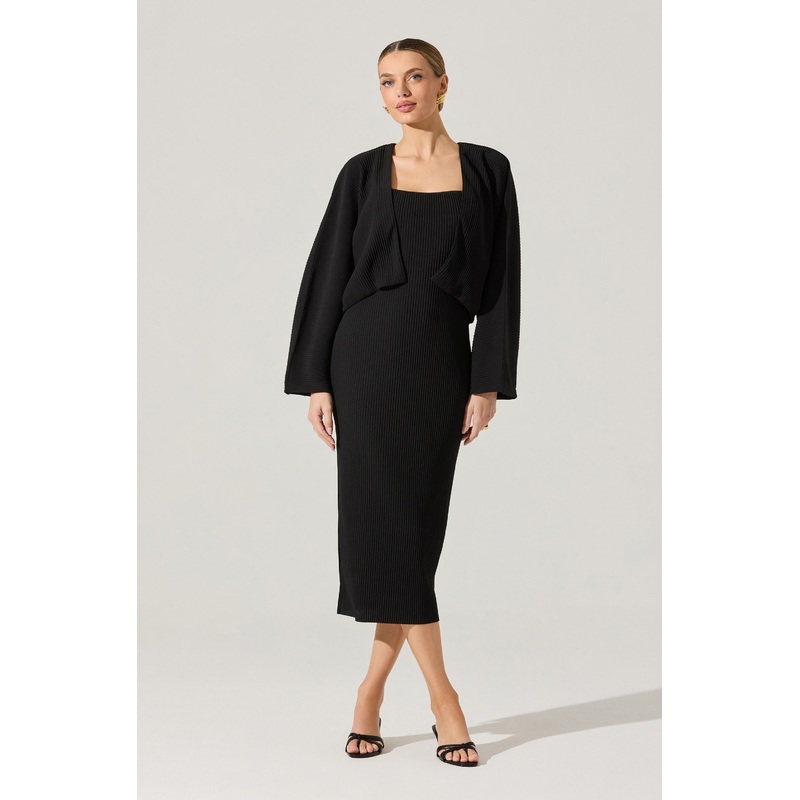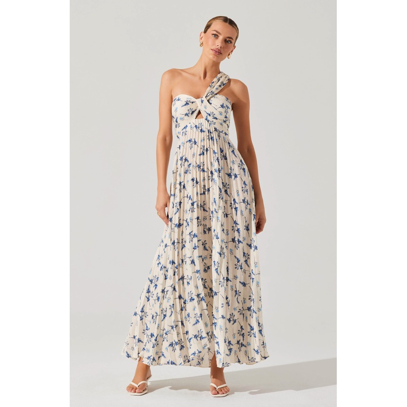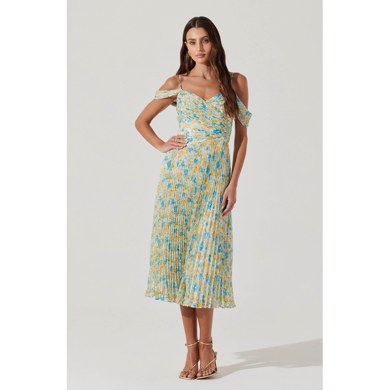 Pleated Cold Shoulder Midi Dress Blue yellow floral