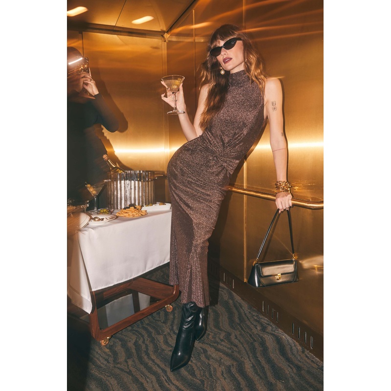 Riana Metallic Twist Front Maxi Dress Brown metallic