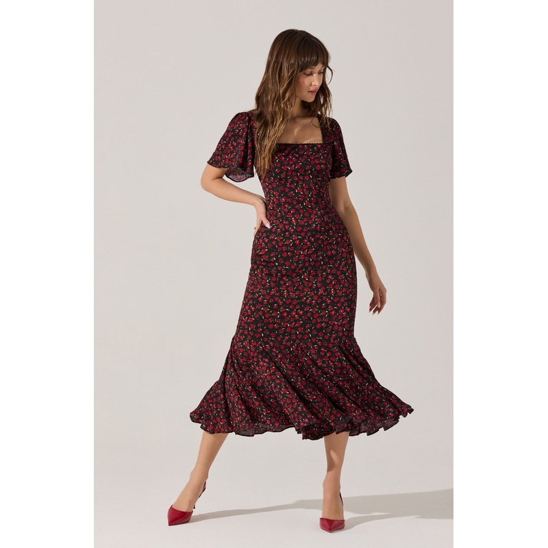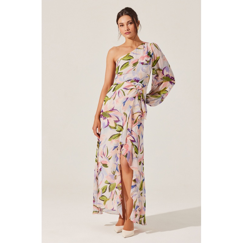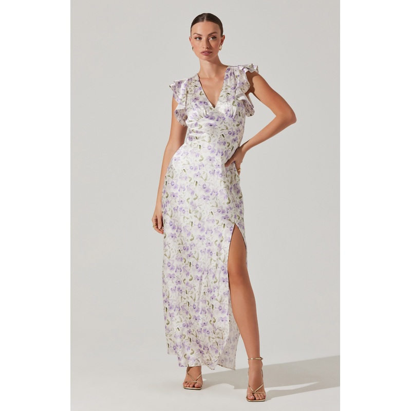 Satin Flutter Sleeve Maxi Dress Purple floral