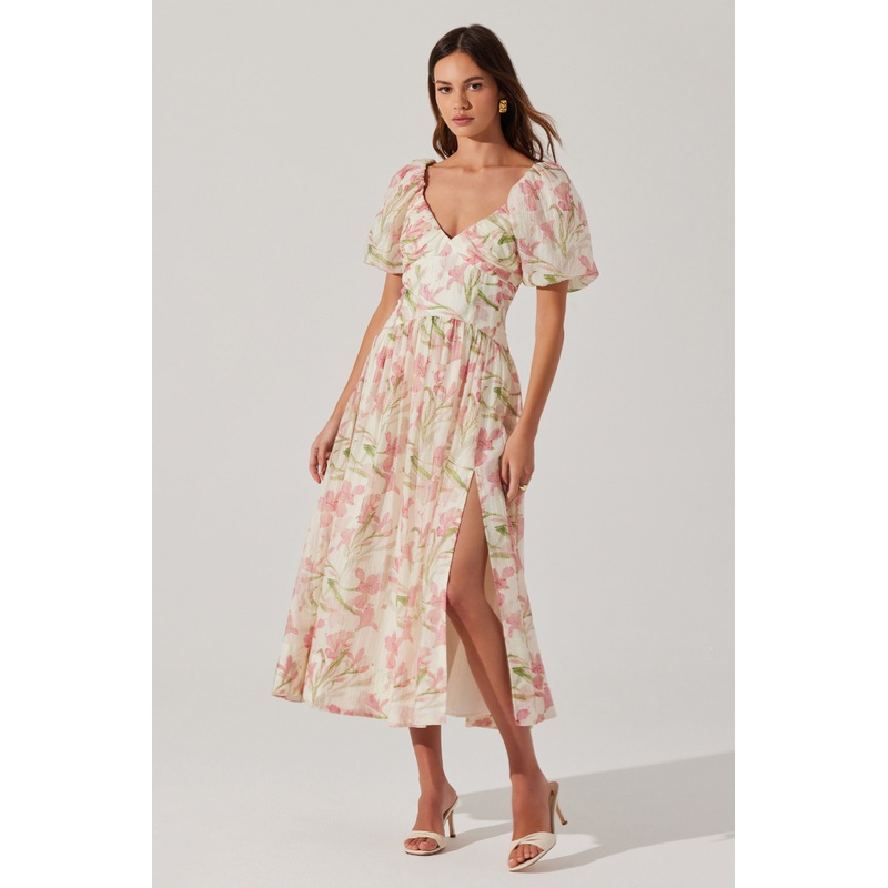 Sasilia Floral Puff Sleeve Dress Pink cream floral