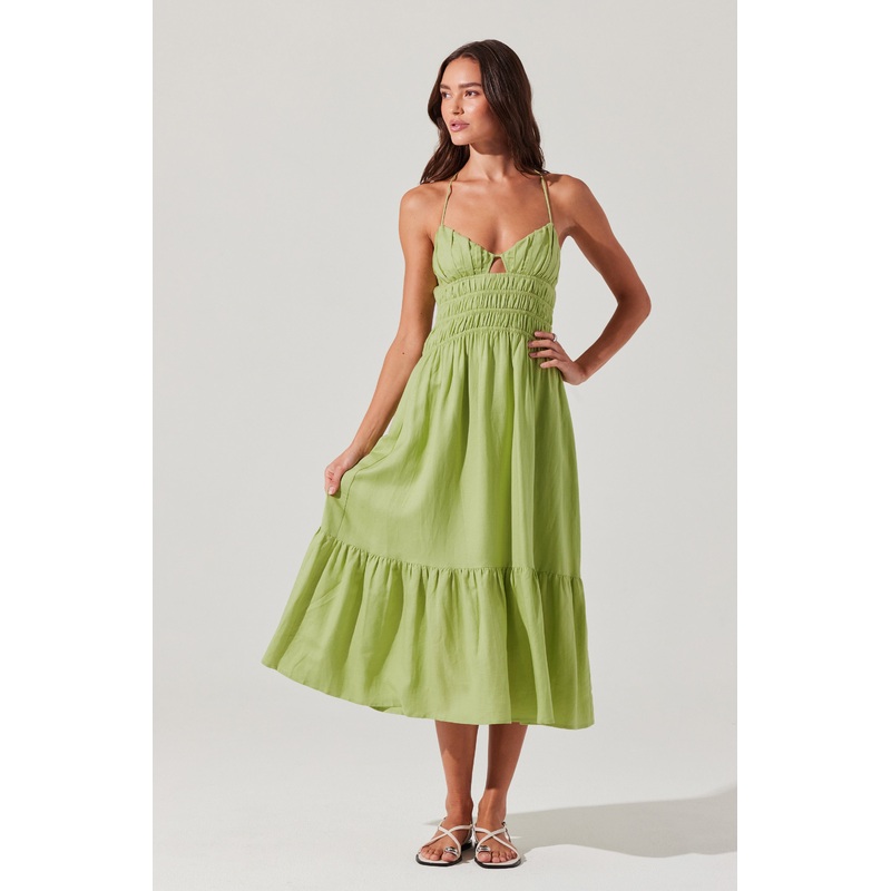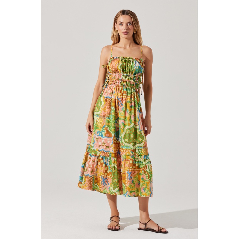 Elisabeth Printed Shirred Midi Dress Mosaic green multi