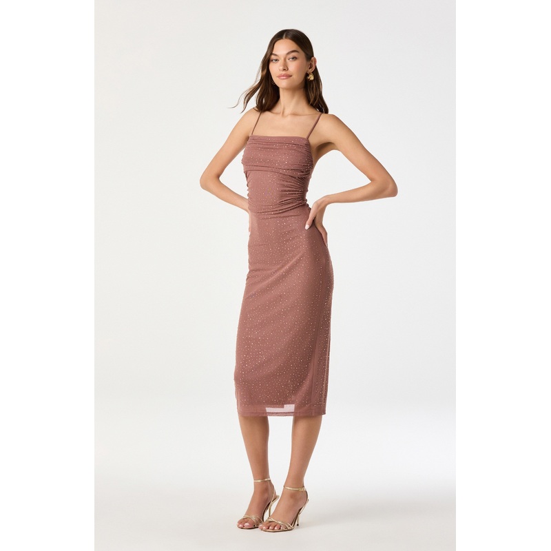 Embellished Rhinestone Ruched Midi Dress Dusty mauve