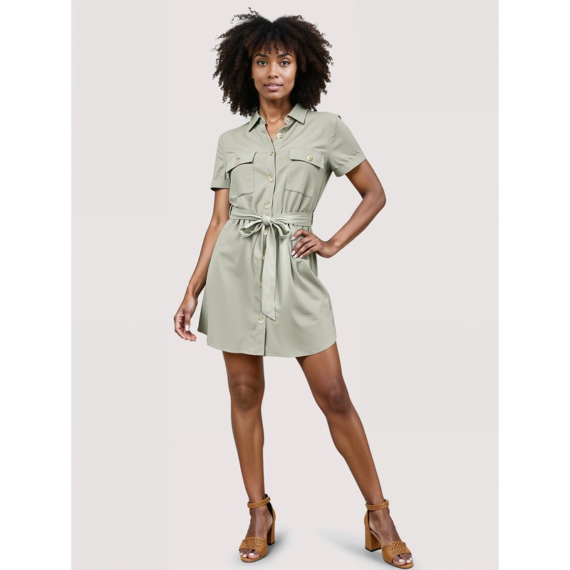 Two Pocket Button Down Shirt Dress GREEN – OLIVE