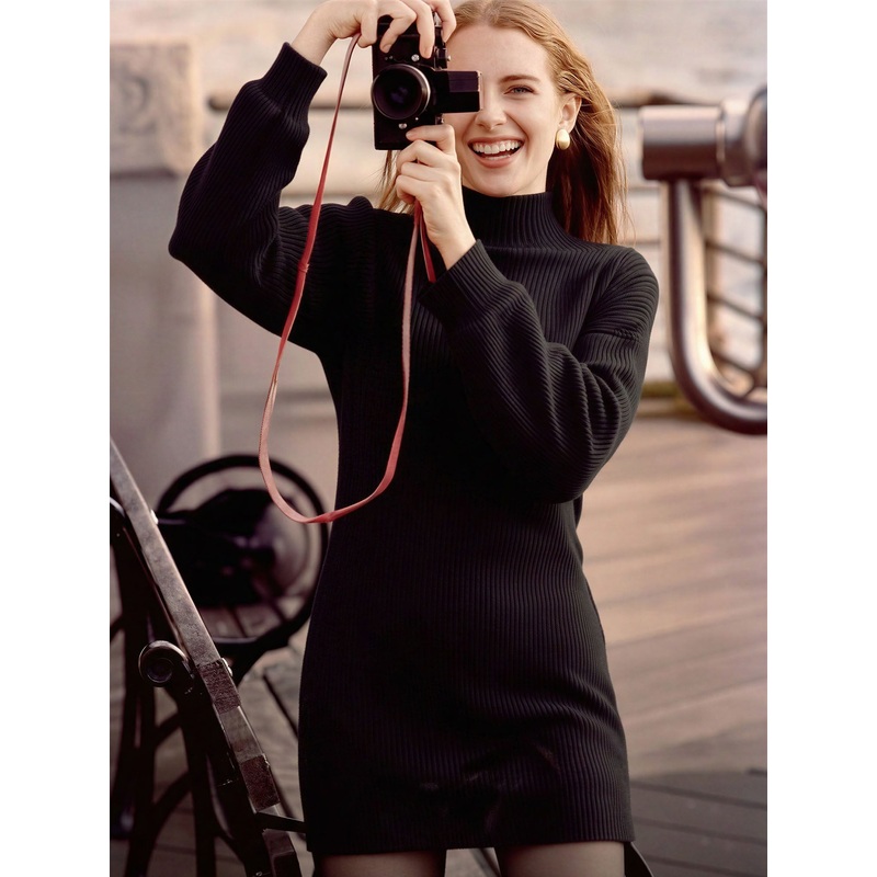 Turtle Neck Sweater Mini Dress BLACK – BLACK