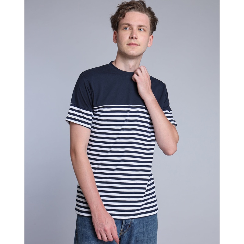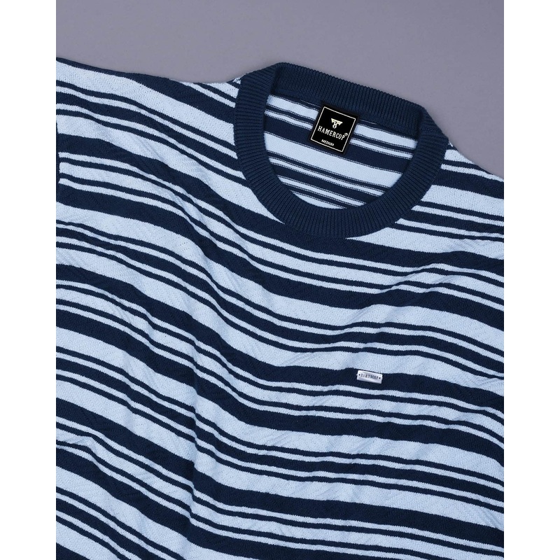 Tuzon Blue Stripe Knitted Cotton T-Shirt