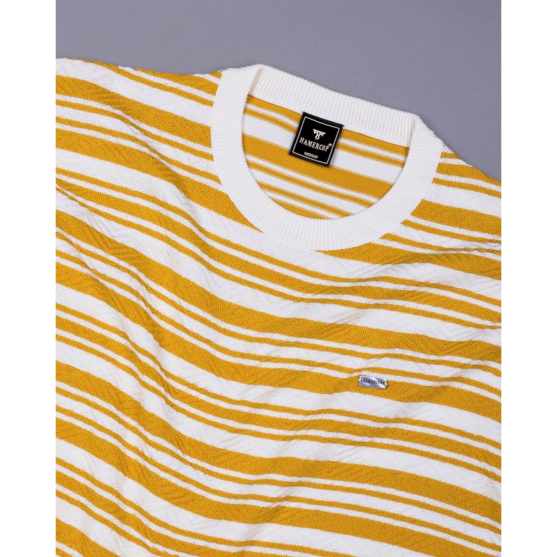 Tuzon Yellow Stripe Knitted Cotton T-Shirt