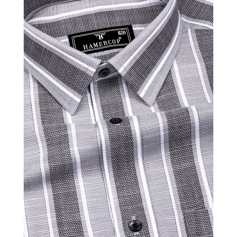 Ultimate Gray With White Dobby Stripe Cotton Shirt