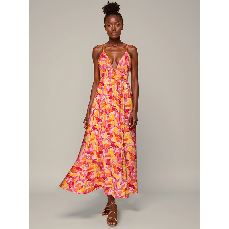 V Neck Abstract Print Maxi Sun Dress PINK – PINK