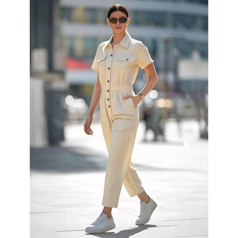 Utility Polka Dot Jumpsuit WHITE – IVORY