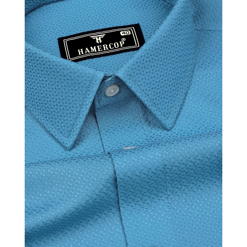 Universe Blue Dobby Texture Solid Cotton Shirt