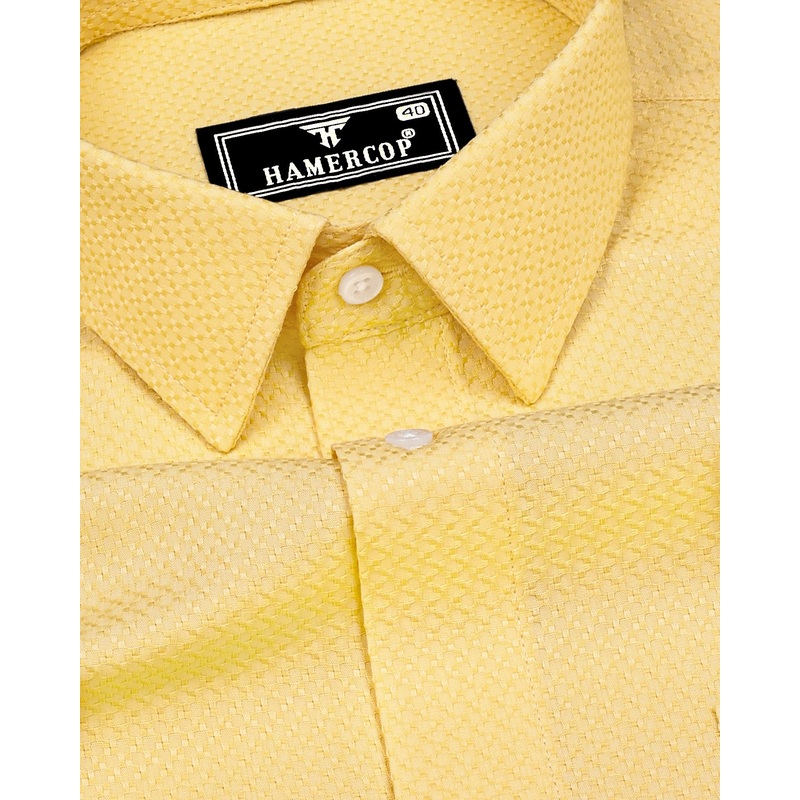 Universe Yellow Dobby Texture Solid Cotton Shirt