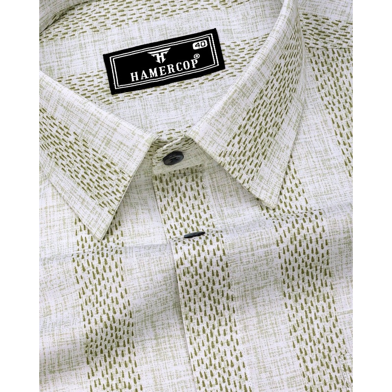 Unity Green With White Printed Linen Cotton Shirt