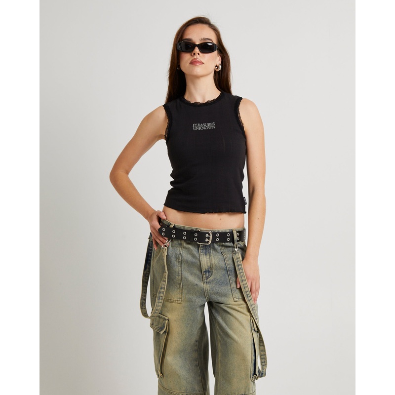 Unknown Diamonte Pointelle Tank Top BLK